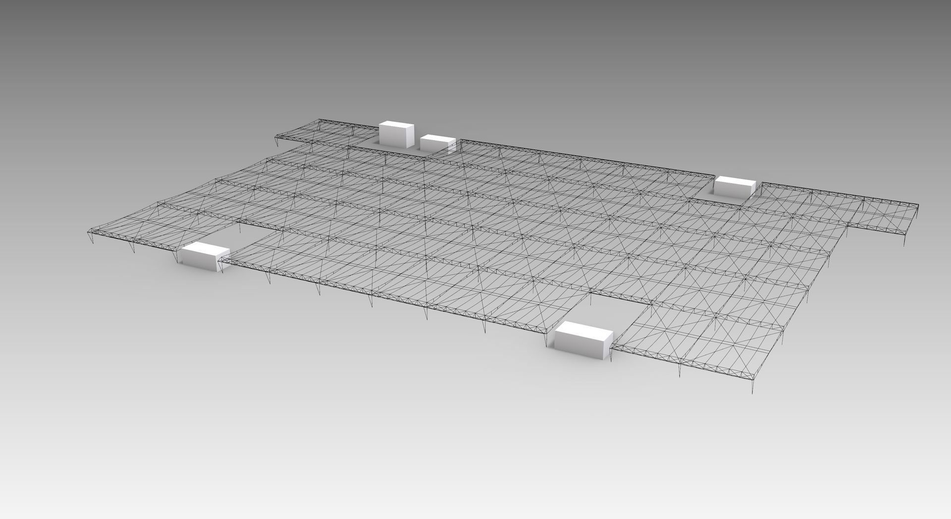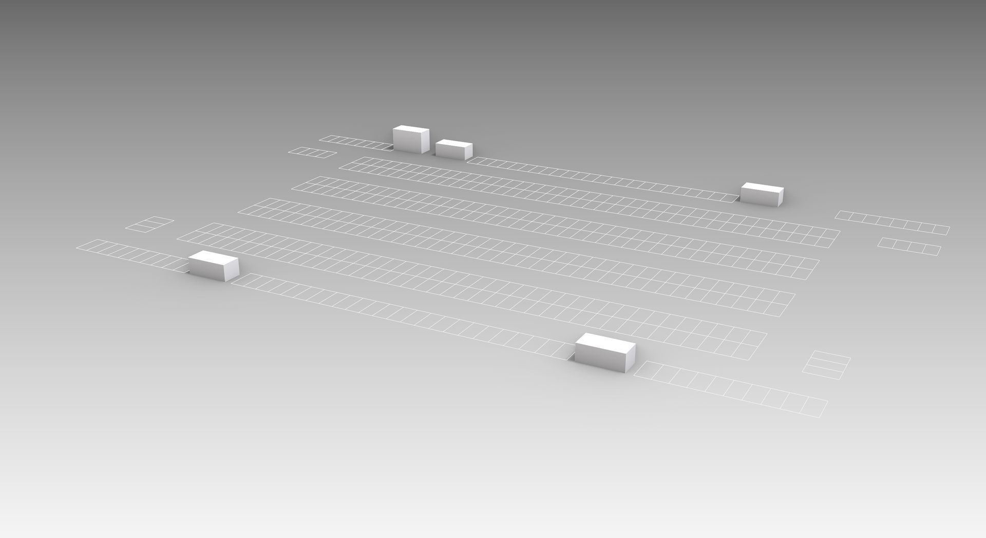 Das Parkhausensemble besteht aus 4 Parkhaushallen, Halle A, B, C und D, sowie eine Lagerhalle, Halle E. Die Hallen wurden mit eine flexible Raumteilung gebaut. Die Konstruktion der Hallen, inklusive der Lagerhalle, Halle E, ist als Stahlrahmenkonstruktion mit Punktfundamenten erbracht. Die Bedachung, die Außenwände, sowie die Trennwände sind aus Trapezblechprofilen ausgeführt.