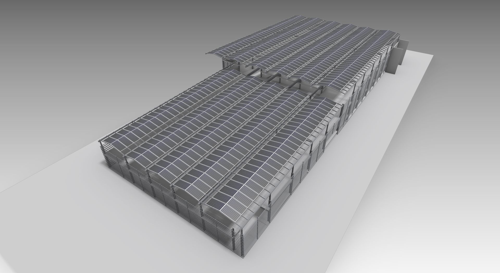 Die Dächer sind aus Stahltrapezblech 50/250 x0,75mm mit Korrosionsschutz und unterseitiger Antitropfbeschichtung erbracht und so konzipiert und statisch ausgelegt, dass eine Photovoltaikanlage mit max. 20 kg/m² Gewicht montiert werden kann.